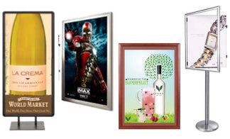 Our biggest-seller, poster snap frames "SwingSnap" Poster Frames, come in over 100 standard sizes from small to extra-large snap frame sizes. Snap Frame Sign Holders, also referred to as clip frames or flip-up frames, come in numerous styles, including mitered or radius corner, security screw, locking snap frames. We also offer backlit and edge-lit LED snap frame lightboxes.