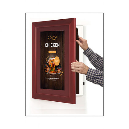 Its simplicity and hidden features makes the wall mount Wide-Face SwingFrame Menu Frame display case a smart choice for any type of restaurant, with its simple, 1” slightly curved contemporary style metal frame profile, the Wide-Face is our most popular changeable restaurant menu display frame.