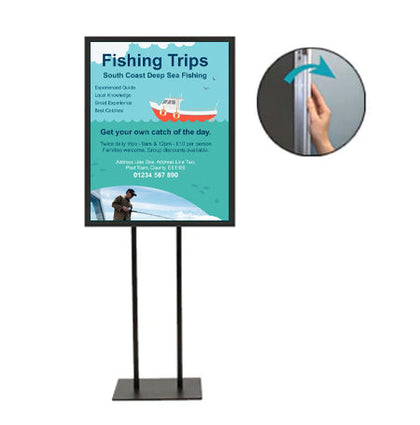 - Floorstand Snap Frame: Singled Sided (1 Frame) or Double Sided (2 Frames)