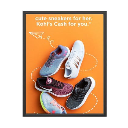 Aluminum Snap Frames 13x19 are the most popular changeable poster displays. Simplicity and low cost are the primary reason as well as offering the most popular 13 x 19 poster frame finishes, black, silver and gold that fit comfortably within numerous interior retail store decors. One 13 x 19 poster display or several 13x19 sign frames or thousands of 13x19 frames, “poster snaps” remains the favored choice for small and large businesses, retail stores, corporations, institutions and as a POP display signage fixture. Wall mount and snap open your 13x19 snap frame, update your 13 x 19 poster, and snap shut. That's it!