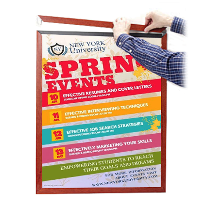 - Magnetic Clamps are placed onto the backing board to secure your thin poster, graphic or image in place.
