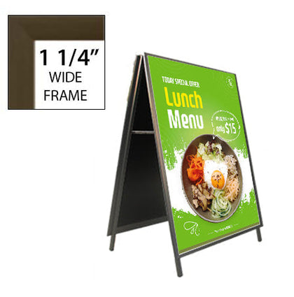 AFrame display stand finishes come in either in Black or Silver. To compliment wide-ranging interior decors, choose from 8 colorful snap frame finishes. Portable and easy to store, the 20" x 24" A Frame Floor Sign Holder Stand easily folds to place onto your desired floor location.