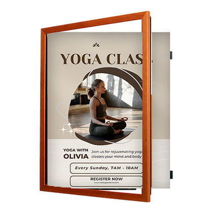 SwingFrame's patented, swing-open, 24x36 picture frame has always used the finest quality custom metal & wood picture frame profiles . Any of our SwingFrame Poster Display Frame Styles can be built as a standard picture frame for posters 24x36. Just like any other traditional wall picture frame, the graphic loads from the back of the metal poster frame or wood frame and would require the 24x36 poster frame to be removed from the wall to change your photos or graphics.