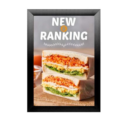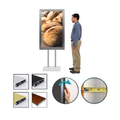 • Quick-Changing, all 4 frame rails snap-open for easy poster changes