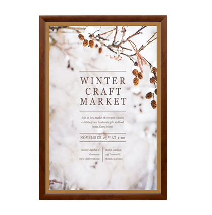 Cost effective. wall mount wood snap frames for small and large signage projects are accentuated with a simulated wood wrap finish and are the ideal choice for many quick change display applications that require an interior touch with a wood finish.
