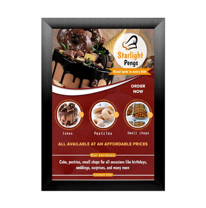 Mini poster snap frames with .60" wide mitered corners allow you to effortlessly place and change your posters, signs, and advertisments; all four sides of the .60" wide metal snap frames are spring-loaded to snap-open and snap shut.