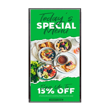 Its simplicity and hidden features makes the wall mount Wide-Face SwingFrame Menu Frame display case a smart choice for any type of restaurant, with its simple, 1” slightly curved contemporary style metal frame profile, the Wide-Face is our most popular changeable restaurant menu display frame.
