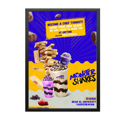• Quick-Changing, all 4 frame rails snap-open for easy poster changes