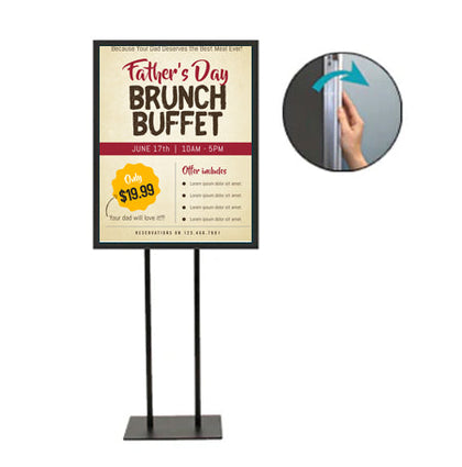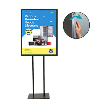 - Floorstand Snap Frame: Singled Sided (1 Frame) or Double Sided (2 Frames)