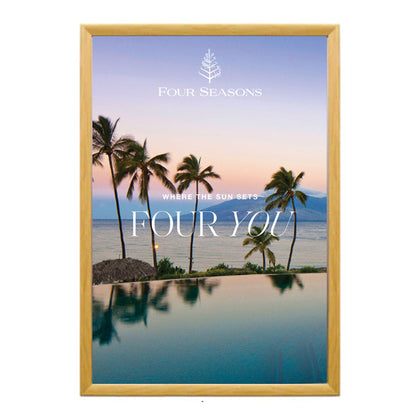 Whatever the application, these oversized, mitered, high quality, front-loading "SwingSnap" wood poster display frames make a popular poster display and sign holder, widely used for trade shows, exhibits, banks, and as store signage fixtures.