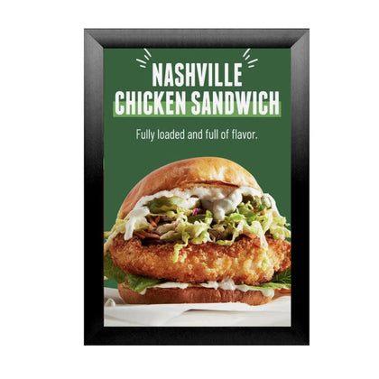 Whatever the application, these oversized, mitered, high quality, front-loading "SwingSnap" wood poster display frames make a popular poster display and sign holder, widely used for trade shows, exhibits, banks, and as store signage fixtures.