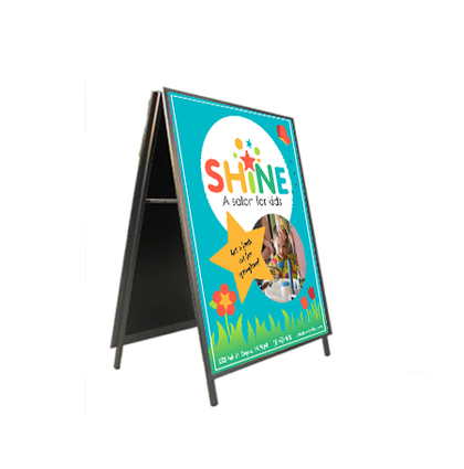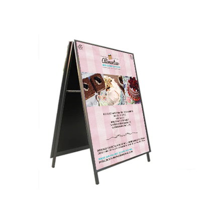 There is an A-frame sign holder that fits your branding needs and budget. Browse 1 1/4-inch-wide metal and wood A-frame signs with snap frames for a classic display. Your poster is the center of attention with no bulky frames.