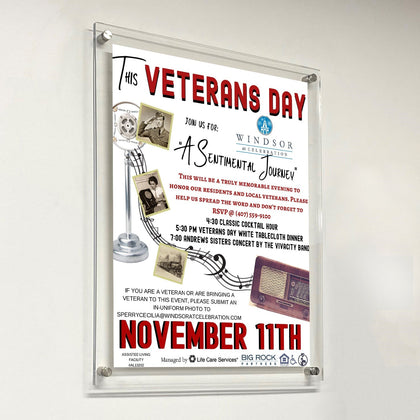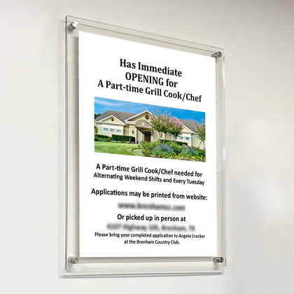 • 16 x 20 Acrylic Wall Mounted Sign Holder with Standoffs
