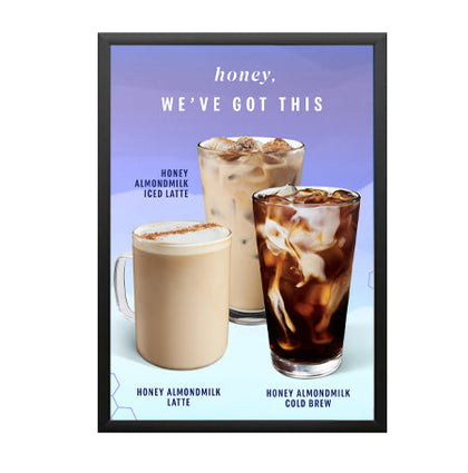 - Quick-Changing, all 4 frame rails snap-open for easy poster changes