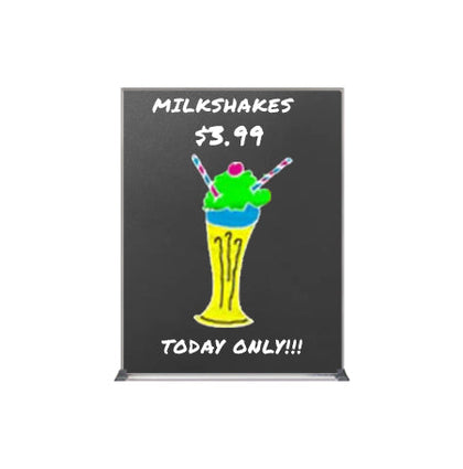 These Open Face Message Blackboards use colorful Florescent Wet Erase Markers to help you create eye-catching restaurant menus, business office and home notes, brainstorming and classroom lessons, product and service announcements –All kinds of info, notices and messages.