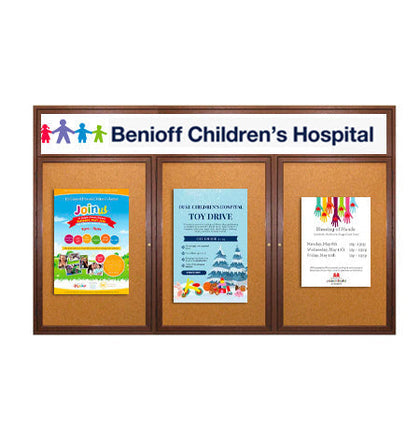 96 x 48 Indoor Wood Enclosed Bulletin Boards with Header & Lights (3 DOORS)