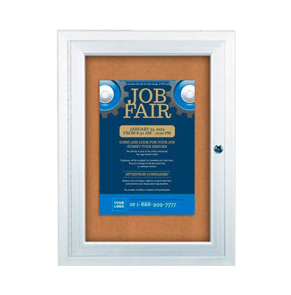 You can also add a splash of color with optional vinyl covered cork boards for outdoor display cases and fabric for indoor enclosed cork boards.