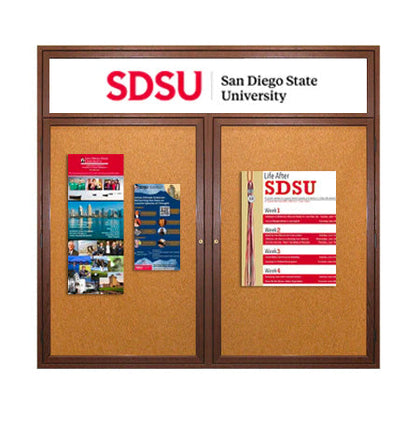 72 x 48 WOOD Indoor Enclosed Bulletin Cork Boards with Interior Lighting (2 DOORS)