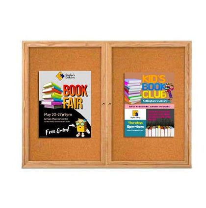 96 x 24 WOOD Indoor Enclosed Bulletin Cork Boards (2 DOORS)