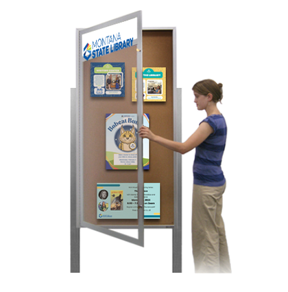 Set up your announcement center inside or outside with the right cork display board. Our outdoor bulletin board displays come in numerous sizes and finishes that will draw attention. Exterior bulletin boards with one door and large bulletin boards with two or three doors are popular options in several models, including message headers and LED lighted cabinet interiors. The displayed contents are secured with front frame cam locks with a break-resistant Lexan polycarbonate clear window. Use push pins or map pins to post your printed materials.