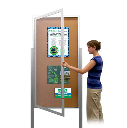 Swing Case 24x60 Extra Large Outdoor Enclosed Bulletin Board w Leg Posts (Single) Door