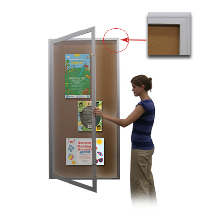 Set up your announcement center inside or outside with the right cork display board. Our outdoor bulletin board displays come in numerous sizes and finishes that will draw attention. Exterior bulletin boards with one door and large bulletin boards with two or three doors are popular options in several models, including message headers and LED lighted cabinet interiors. The displayed contents are secured with front frame cam locks with a break-resistant Lexan polycarbonate clear window. Use push pins or map pins to post your printed materials.