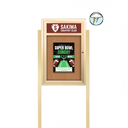 Set up your announcement center inside or outside with the right cork display board. Our outdoor bulletin board displays come in numerous sizes and finishes that will draw attention. Exterior bulletin boards with one door and large bulletin boards with two or three doors are popular options in several models, including message headers and LED lighted cabinet interiors. The displayed contents are secured with front frame cam locks with a break-resistant Lexan polycarbonate clear window. Use push pins or map pins to post your printed materials.
