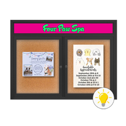• 72x48 Bulletin Board 2 Door Lighted + Header - For Indoors Only
