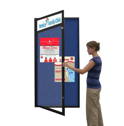 Set up your announcement center inside or outside with the right cork display board. Our outdoor bulletin board displays come in numerous sizes and finishes that will draw attention. Exterior bulletin boards with one door and large bulletin boards with two or three doors are popular options in several models, including message headers and LED lighted cabinet interiors. The displayed contents are secured with front frame cam locks with a break-resistant Lexan polycarbonate clear window. Use push pins or map pins to post your printed materials.