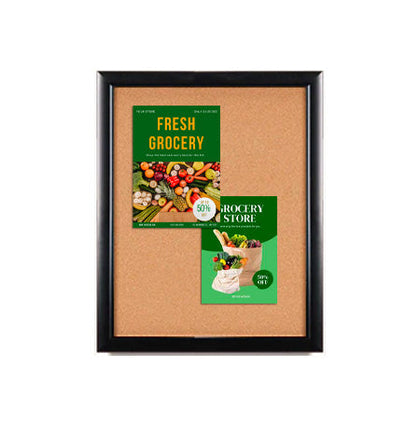 Slim, Locking 18x24 Elevator Frame + Cork Bulletin Board + Safe, Smooth Rounded Corners | Quick Change, Lift-Off Frame Design