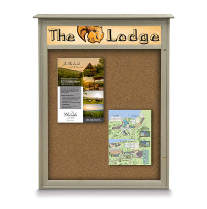 24" x 36" Outdoor Message Center Display Case with Cork Board and Your Personalized Message Header - Eco-Design Faux Wood Cabinet