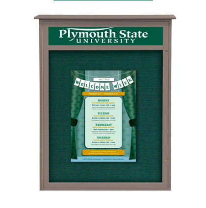 8.5" x 11" Viewable Area Outdoor Message Center Cork Board with Header | LEFT Hinged Single Door