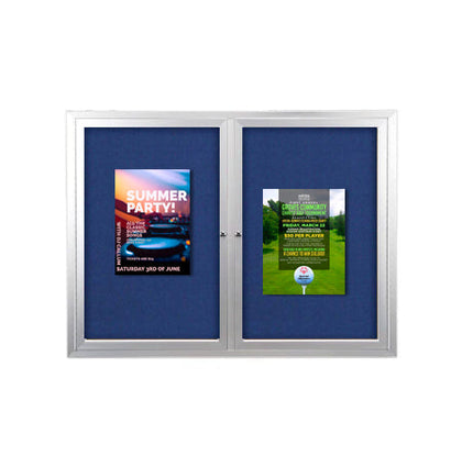 Outdoor Enclosed 60x24 Bulletin Cork Boards with Lights (with Radius Edge & Leg Posts) (2 DOORS)