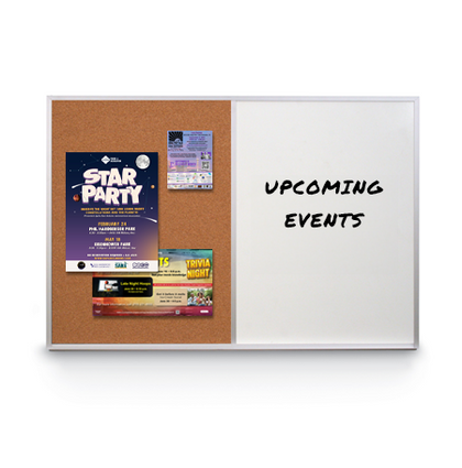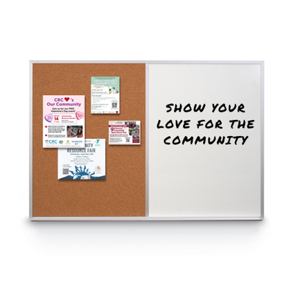 This multi-purpose magnetic dry erase cork bulletin combo board has an attractive 1/2" wide satin aluminum trim border to frame the board. This open face combo board is ideal for writing notes, messages, and more while posting bulletins such as; fliers, posters, photos, restaurant menus, or any other posting, message or advertisement you wish to display.