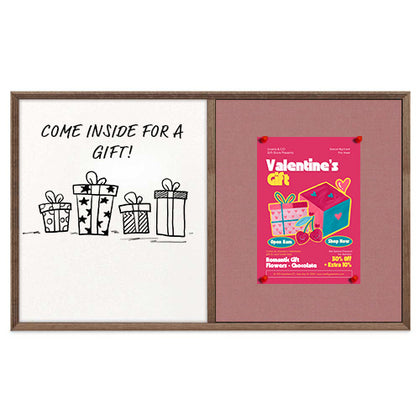This multi-purpose porcelain magnetic dry erase cork bulletin combo board has an attractive 1" wide wood trim border frame available in Cherry, Walnut or Light Oak. This open face combo board is ideal for writing notes, messages, and more while posting bulletins such as; fliers, posters, photos, restaurant menus, or any other posting, message or advertisements you wish to display.