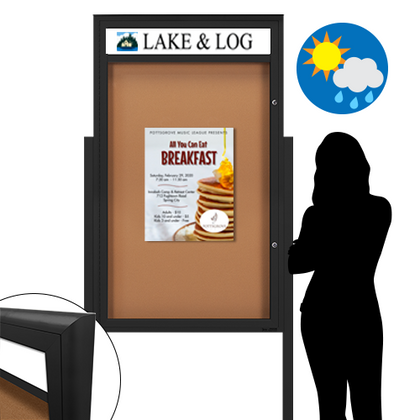 • Freestanding WeatherPlus™ XL Radius Edge Outdoor Enclosed Bulletin Board with LED's and Personalized Header