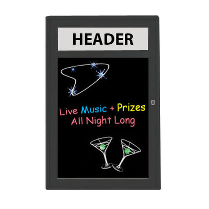 If your message display board needs to be visible both day, night, or in dimly lit areas, another model you can order is a lighted markerboard display case. It comes with a long-lasting fluorescent bulb or energy-efficient, long-lasting bright LED Lighting, with or without a message header. The illuminated wall-mounted display case is 3 1/8" deep.