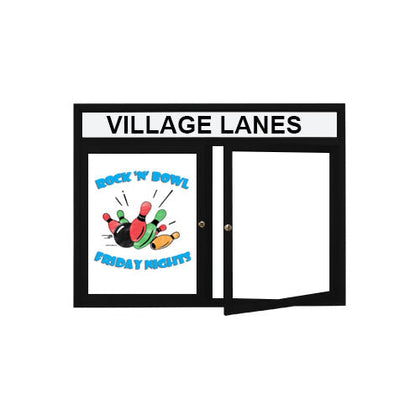 Indoor Enclosed Dry Erase Marker Board with Header and Lights | 2 and 3 Doors | Black Porcelain Steel