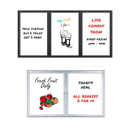 Outdoor Enclosed Dry Erase Marker Board (2 and 3 Doors) - Black Porcelain Steel