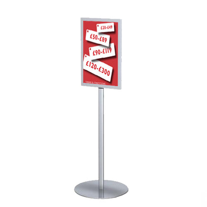 If you’re searching for a display that won’t easily tip over, our DURA portable sign stands are what you need. With 19” round 15 lb. bases, these stands are designed for maximum stability. They perform great in high traffic areas like plazas, malls, casinos, arenas, and more. We offer four different sizes in either a black or silver finish.