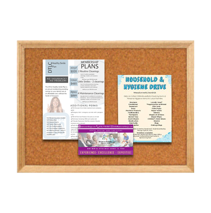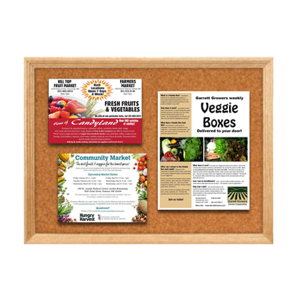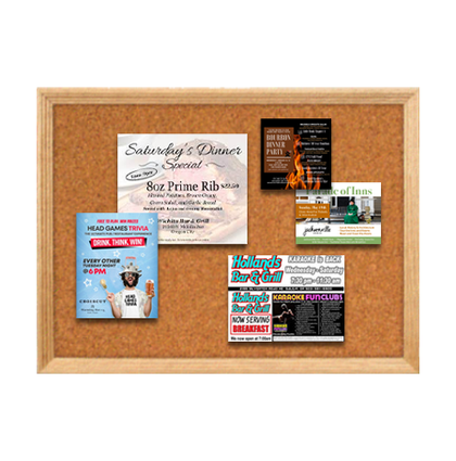 On Many Large Bulletin Boards Sizes with Decorative Wood Framed. Custom Cork Bulletin Boards are Also Available. Call for Custom Quote.