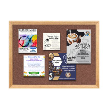 Thinking about a Custom Cork Board? Our Custom Design Department can design and create any style bulletin board with your choice of 200+ wood and metal frame profiles and a variety of custom bulletin board sizes. With our 20 years of experience in custom display solutions, we can create the right framed cork bulletin board for your indoor or outdoor location. Contact us to learn more.
