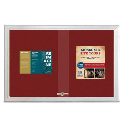 More than 84x36 Glass Bulletin Boards. We have it all; Large Outdoor Metal Framed Bulletin Board with Header, an Indoor Designer Wood Framed Cork Board with Lights, 1,2,3 and 4 door bulletin boards -- all types of custom cork boards, wall mount, free standing, enclosed, framed or frameless; call us for more details.