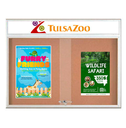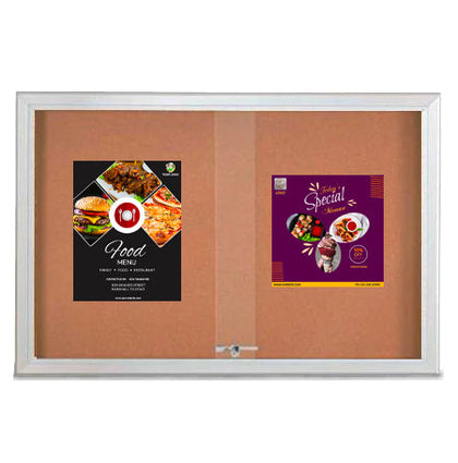 More than 84x48 Glass Bulletin Boards. We have it all; Large Outdoor Metal Framed Bulletin Board with Header, an Indoor Designer Wood Framed Cork Board with Lights, 1,2,3 and 4 door bulletin boards -- all types of custom cork boards, wall mount, free standing, enclosed, framed or frameless; call us for more details.