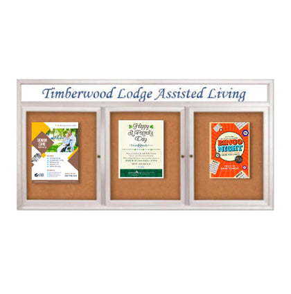 The various collections made for wall mounting at indoor locations include businesses, organizations, and institutions, including 2 and 3 Door Bulletin Boards. These locking cork message boards come in traditional display cases such as hinged and sliding glass doors and wooden and aluminum display case cabinets. Many hinged cabinet doors come with break-resistant acrylic (polycarbonate) clear windows. Tempered glass is optional. When choosing any enclosed corkboard displays, you have a slew of options to make it the perfect size and style for your public location or workspace. And if a multi-door custom bulletin board case is needed, many of the display units can be modified and built to your liking.