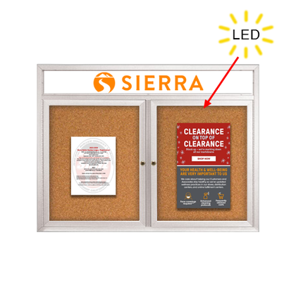 Enclosed Indoor Bulletin Boards 48 x 60 with Header & Lights (Radius Edge) (2 DOORS)
