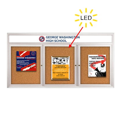 Enclosed Indoor Bulletin Boards 96 x 24 with Header & Lights (Radius Edge) (3 DOORS)