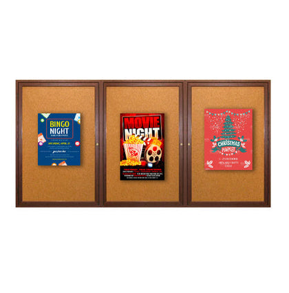 72 x 24 WOOD Indoor Enclosed Bulletin Cork Boards with Interior Lighting (3 DOORS)