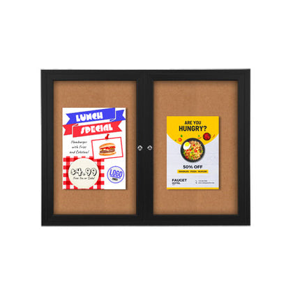 48 x 36 INDOOR Enclosed Bulletin Cork Boards 2 DOOR