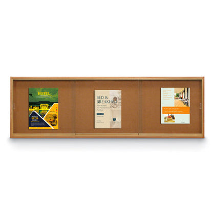 SwingCase wall display board has 3 sliding glass doors. With the 96" w x 48" h cabinet size and large tempered glass doors your postings have an unobstructed viewing area. That means you get to pin and view more messages, posters, ads, and other printed information than other enclosed message cork boards with typical metal or wood framed cabinet doors.